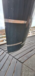Ook hebben ze metalen strips op de fokwiek aangebracht ter plaatse van de schenkels om te zorgen dat er geen planken meer los kunnen raken. Daarnaast hebben ze de uitneembare borden in de andere wieken met schroeven vastgezet om ze extra te zekeren. Met deze ingreep kunnen we veilig de periode overbruggen tot het moment dat het gevlucht gerenoveerd moet worden.